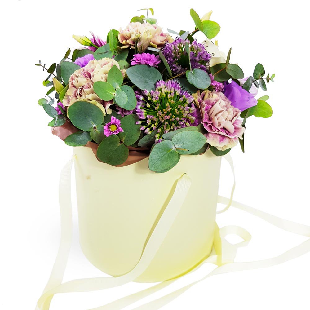 A unique arrangement crafted and delivered in a luxurious ‘hatbox’ container. Available for same day delivery when you order before 2pm. Please note: the hatbox container style may vary from the one pictured. The florist may substitute flowers at their discretion.