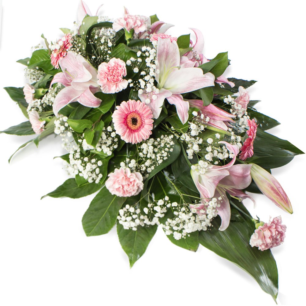 Pink Single Ended Spray. 3ft £85 / 4ft £105 / 5ft £130. This type of funeral arrangement needs at least 1 working day's notice to deliver. It is not possible to make and deliver an item like this same day.